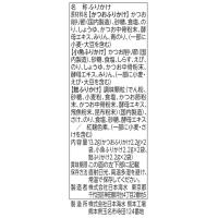 ■かつおふりかけ:かつお削り節(国産)、砂糖、食塩、のり、しょうゆ、かつお中骨粉末、酵母エキス、みりん、青のり、(一部に小麦・大豆を含む)