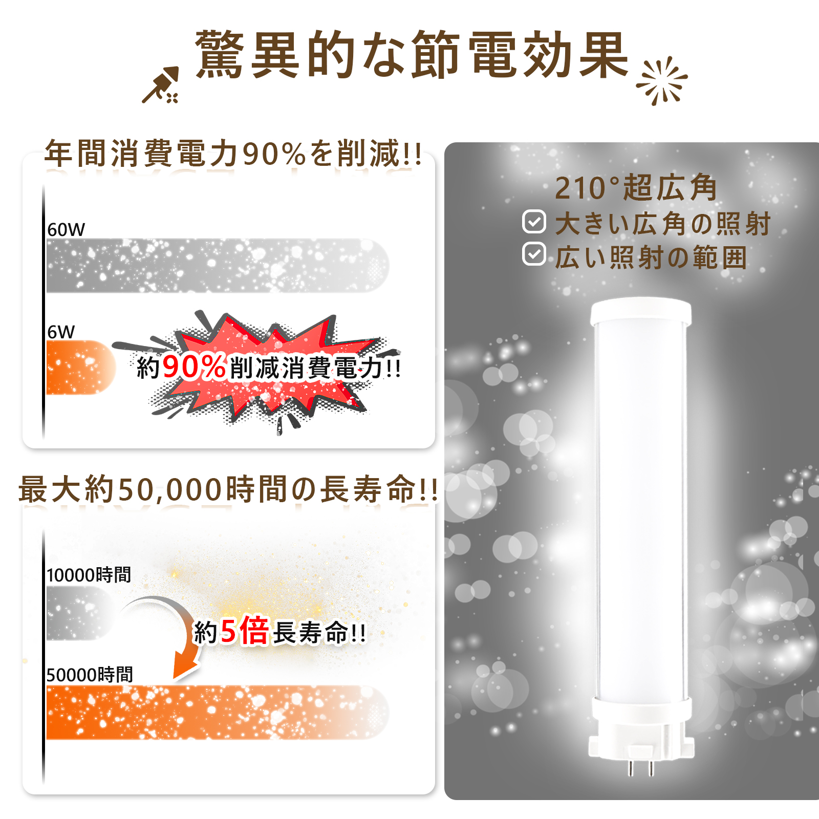 50000Hの長寿命で、維持費を大幅に削減し、従来の水銀灯に比べ、交換作業が大幅に省けます。