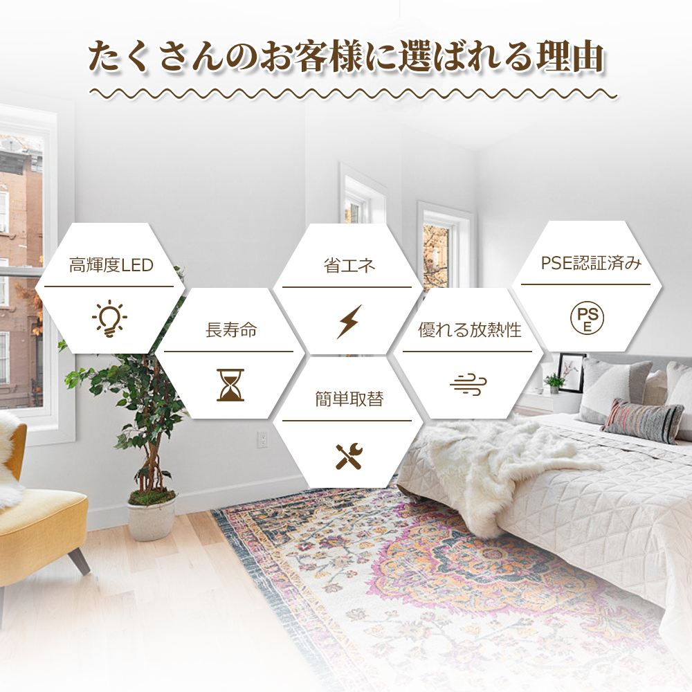 従来の水銀灯にできない瞬時点灯・瞬時再点灯が可能になり、電圧降下などによる消灯でも瞬時点灯できます。ちらつきやノイズがほとんど無いため、目に優しく、周囲の電子機器へのノイズの影響がありません。