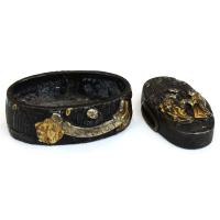刀装具 f-53 縁頭 竹林七賢人の図 赤銅魚子地金色絵 鍔・刀装具