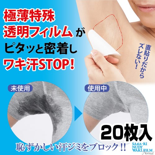 わき汗パッド シールタイプ 汗脇パッド 直貼り フィルム サラーリ ヌーディワキフィルム ノーマル 20枚 貼るタイプ 肌に貼る