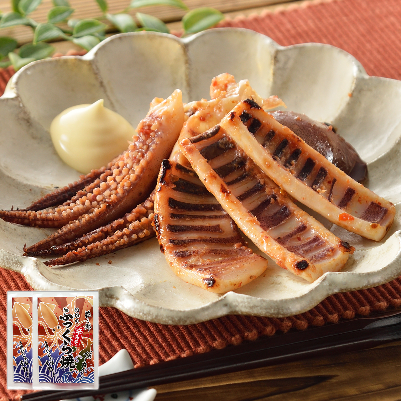 越後味噌をベースに、コチュジャンと一味を合わせた辛味噌味。ピリ辛程度に抑え、いかの旨みをしっかり感じられる味付けです。