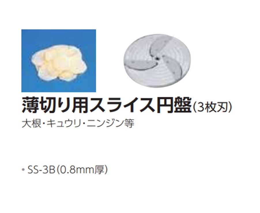ミニスライサー SS-250F用 薄切り用スライス円盤(3枚刃)のみ SS-3B 0.8mm厚 中部コーポレーション