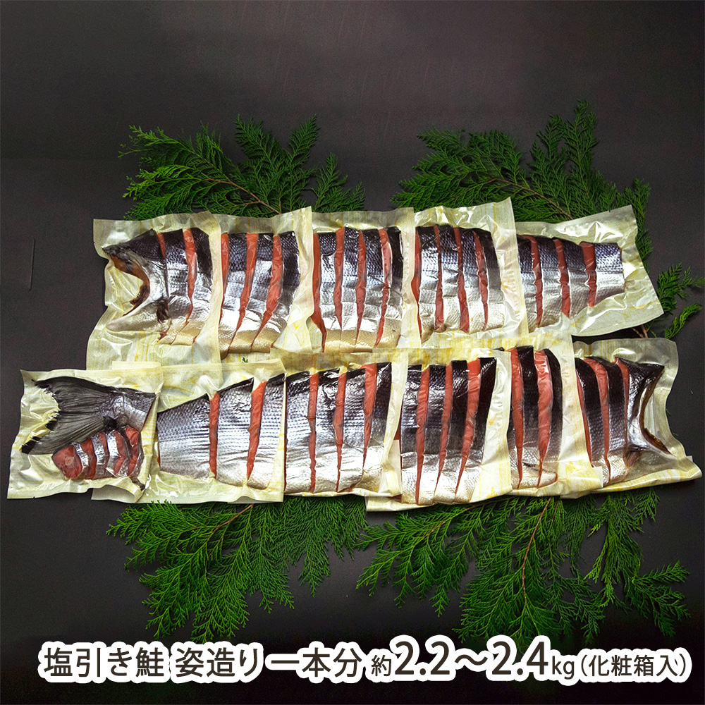 | 内容 | 塩引き鮭 姿造り 一本分 約2.2〜2.4kg(化粧箱入) 商品内容:2〜3切×約16パック入り ※切り身は、真空包装しております。 ※「頭(カシラ)」「尾」は付いておりません。予めご了承ください。 ※切り身は、真空包装しております。 ※この商品は骨抜きです。 |