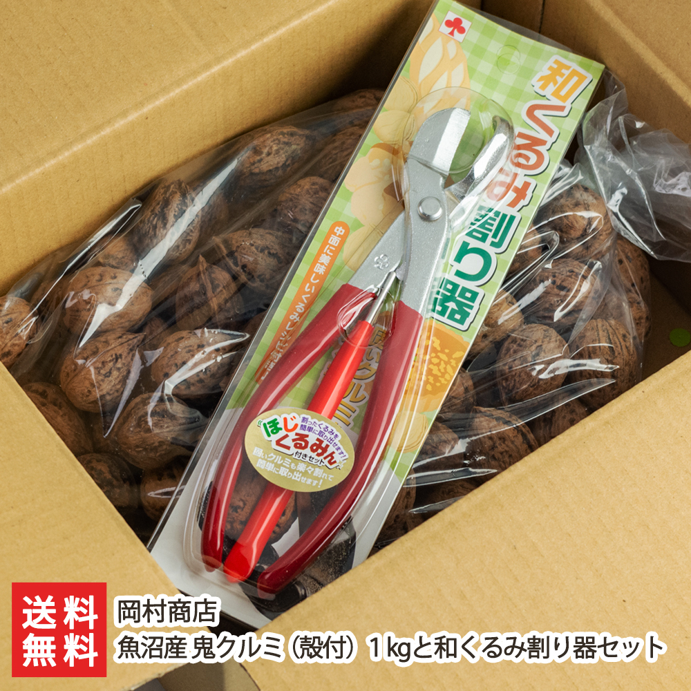 魚沼産 鬼クルミ(殻付)1kg(クルミの内容量:約100個)と和くるみ割り器セット/岡村商店/国産/のし無料/送料無料