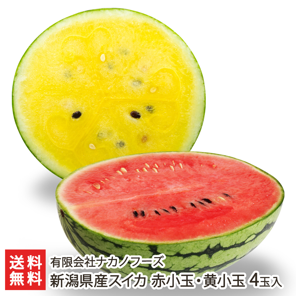 新潟県産スイカ 赤小玉 2玉・黄小玉 2玉/有限会社ナカノフーズ/送料無料