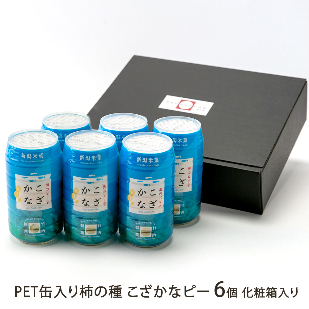 | 内容 | PET缶入り柿の種 こざかなピー 6個 化粧箱入り |