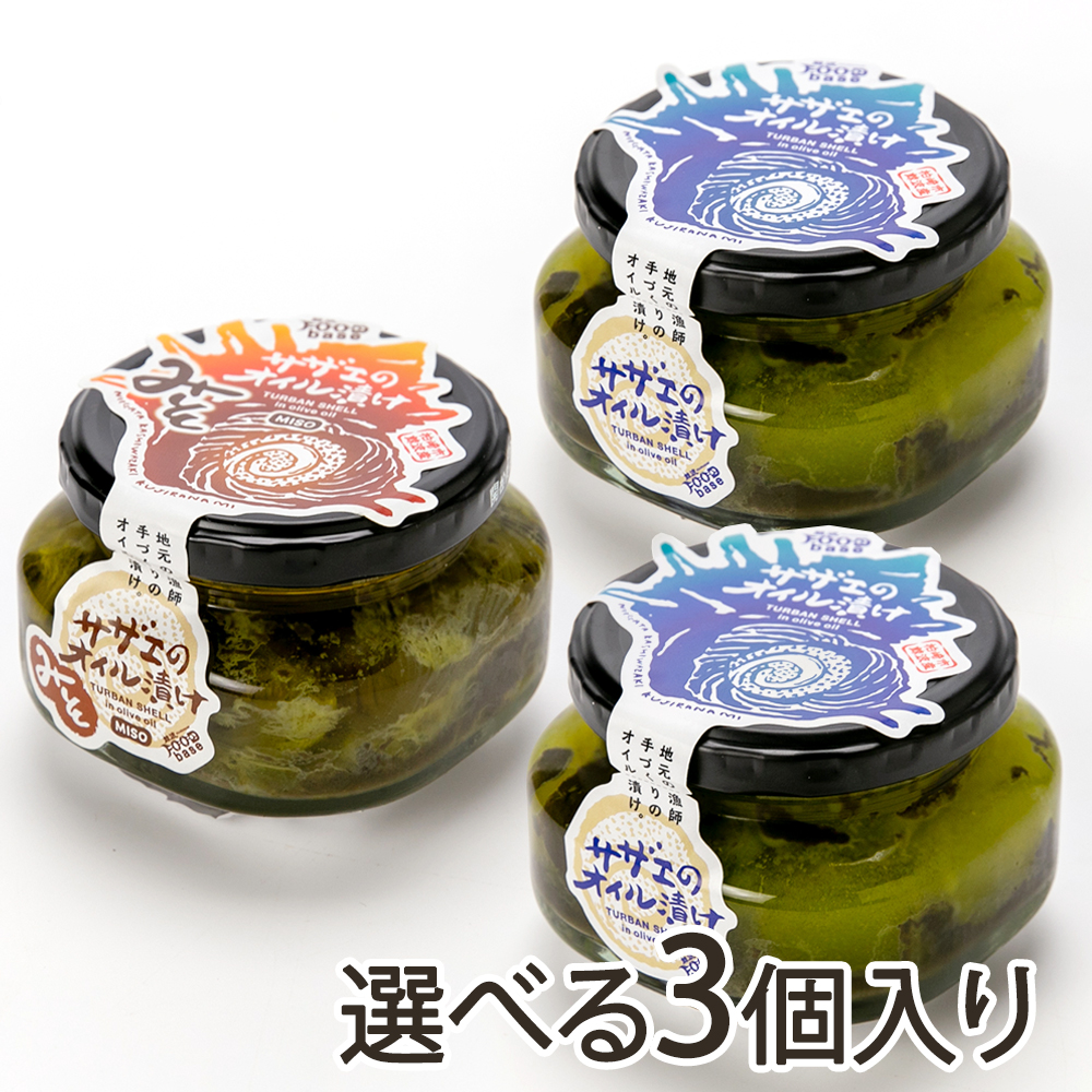 サザエのオイル漬け 選べる3個入り(※お好みの味をお選びください)/鯨波foodbase/送料無料