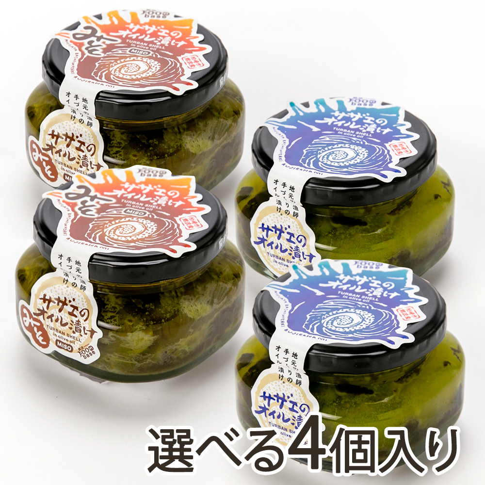 サザエのオイル漬け 選べる4個入り(※お好みの味をお選びください)/鯨波foodbase/送料無料