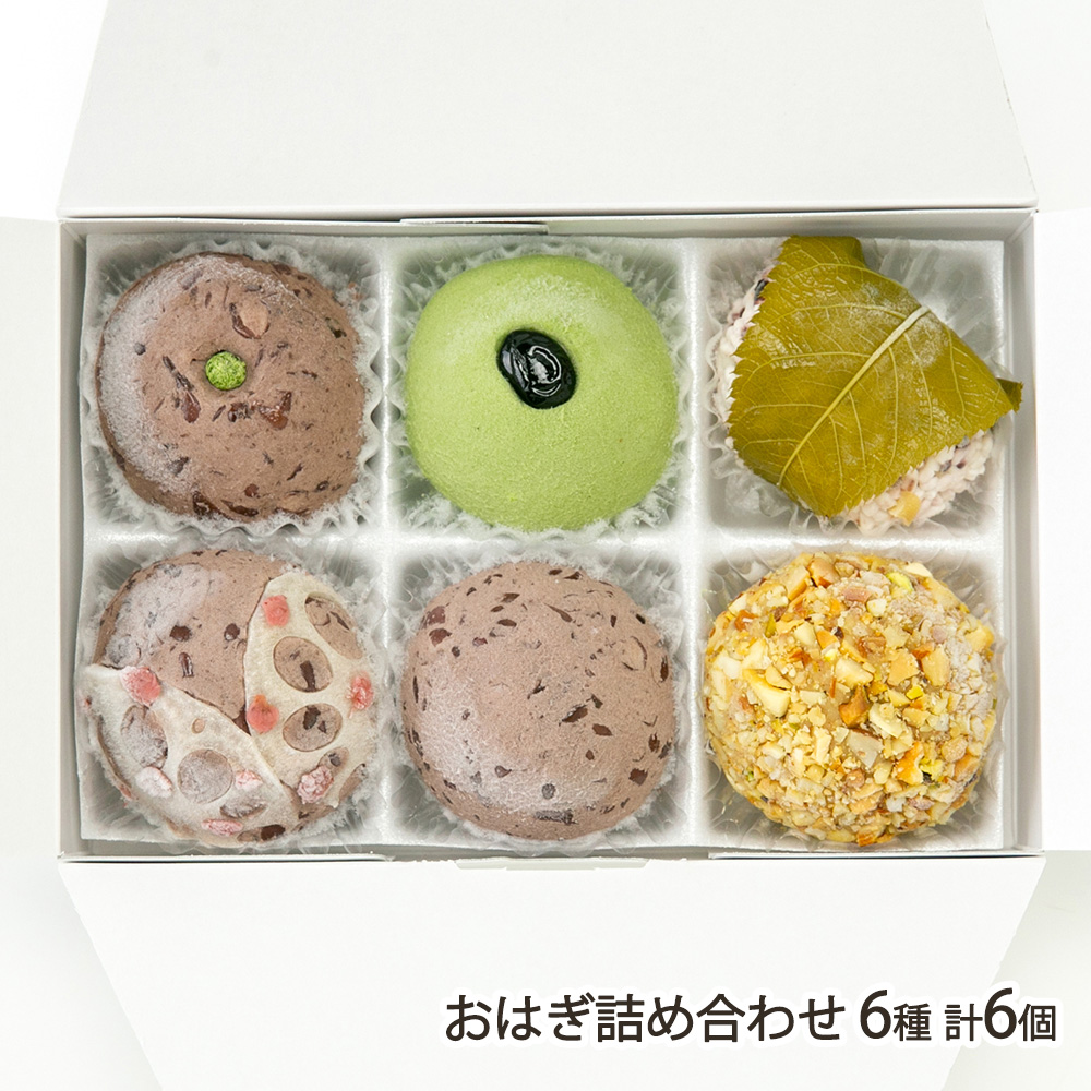 おはぎ詰め合わせ 6種 計6個(あずき・よもぎ・抹茶・ナッツ・さくら・はす 各1個)/おはぎの春の屋 HARUNOYA/後払い決済不可/送料無料