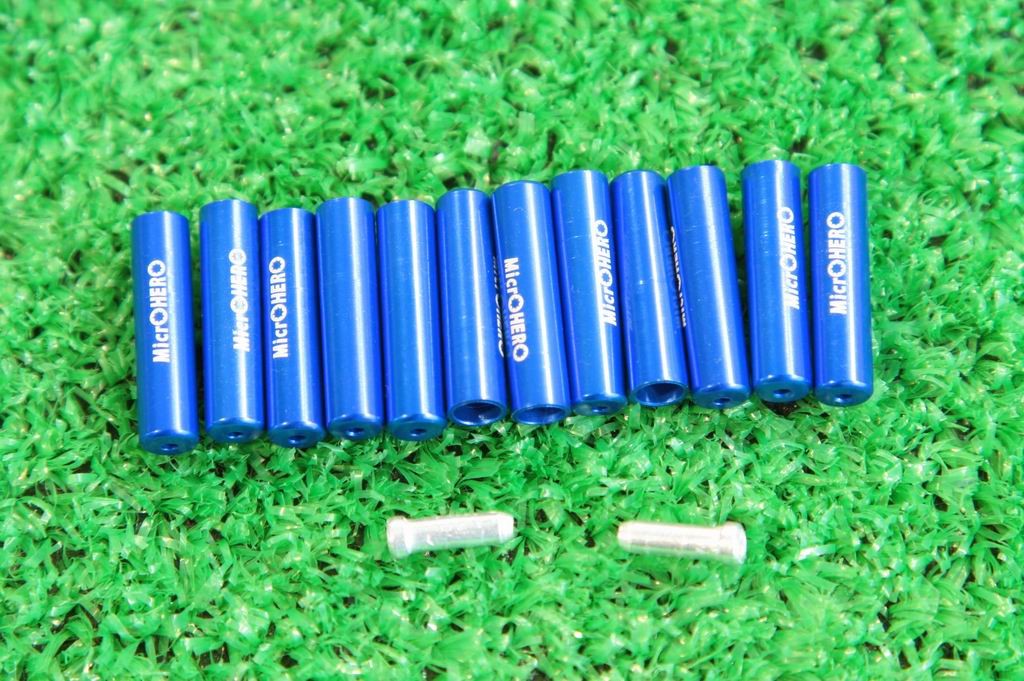 【即納】マイクロヒーロー MicrOHERO 軽量 アルミ シフトアウターエンドキャップ 12個セット 青 ワイヤーエンドキャップ2個付