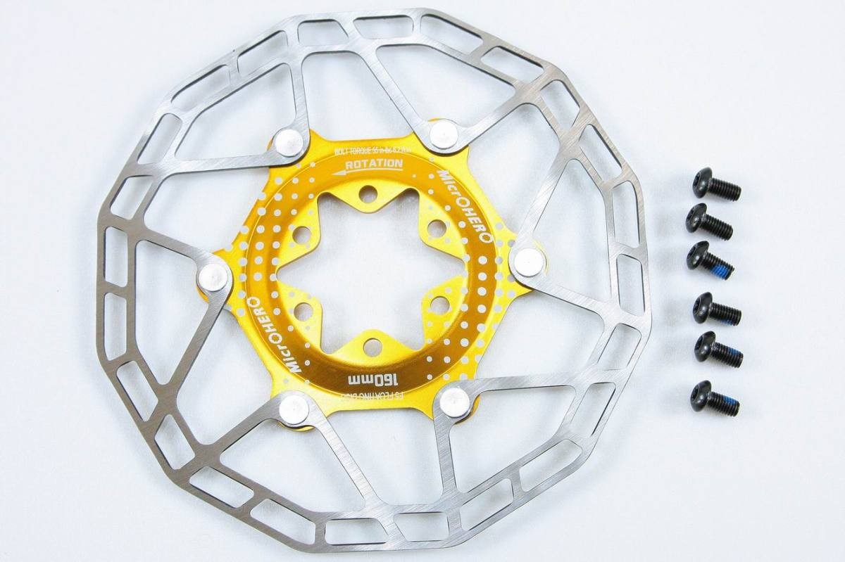 【即納】【超軽量82g】【MTB/ROAD 両用】MicrOHERO 2ピース F5 フローティングディスク ローター 160mmサイズ 1枚 ゴールド