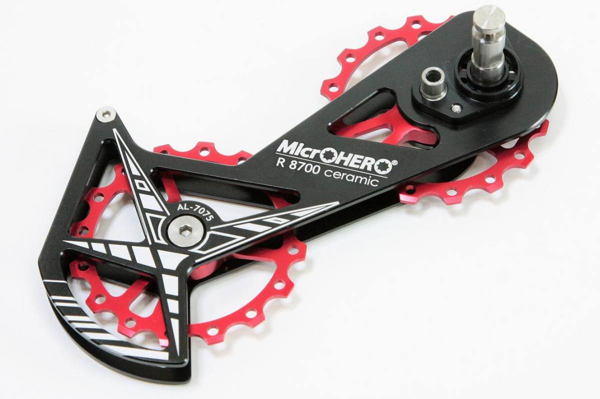 【即納】【軽量90g】 マイクロヒーロー(MicrOHERO)ビッグプーリー シマノ用 超回る セラミックベアリング採用 R8700 レッド