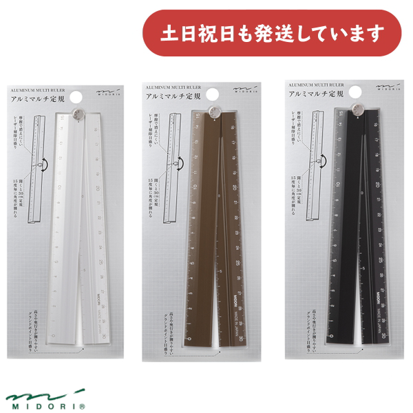 ミドリ アルミ マルチ定規 30cm 文房具 文具 デザインフィル おしゃれ シンプル 丈夫 黒 シルバー 茶 物差し