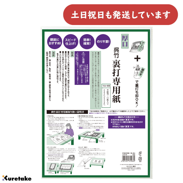 霧吹きとアイロンだけで裏打ちがきれいに仕上がります。厚口タイプです。