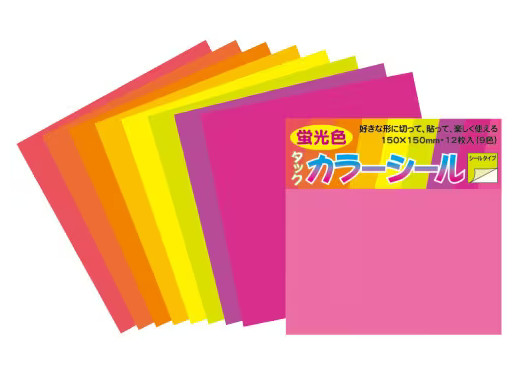 菅公工業 カラーシール 蛍光色 150×150mm 12枚入 (9色)文房具 文具 おしゃれ 教育 工作 幼稚園 保育園 小学校
