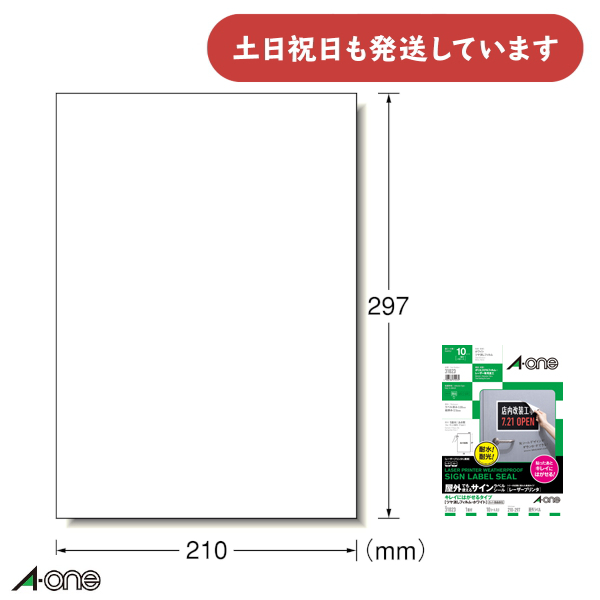 エーワン 屋外でも使えるサインラベルシール キレイにはがせるタイプ つや消しフィルム ホワイト A3判 1面 ノーカット 5シート [クリックポスト対象外商品]