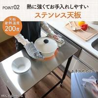 熱に強いステンレス天板 天板はお手入れカンタンなステンレス製で、耐熱温度200度と熱にも強い仕様です。