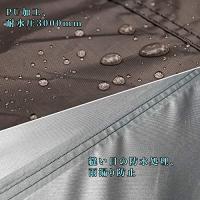 高い耐久性:210D高密度なポリエステルを採用、加えられた強さのための継ぎ目の二重ステッチ、コーナー部分はバータックで補強加工がされているので、耐久性に優れ、タープが緩んだり破れたりするのを防げます。固定バックルは12個あり、タープの安定性とセッティングの可能性を高めます。