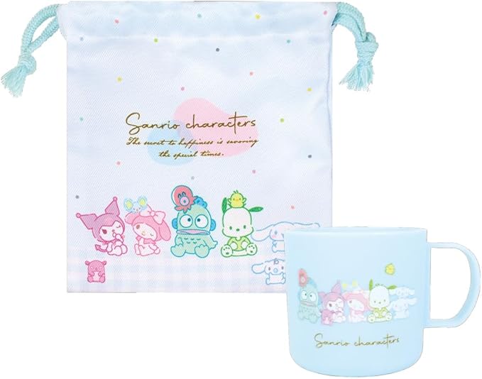 サンリオ 大集合 ブルー プラコップ&巾着セット セット コップ 巾着 ケース 入れ物 シナモン 子供 歯磨き ランチ カップ プラスチック 水色 ブルー 可愛い