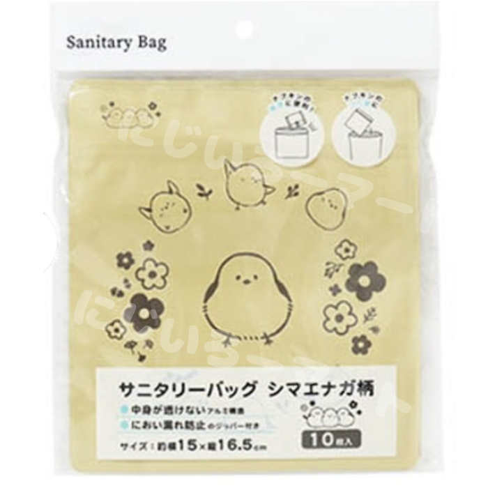 サニタリーバッグ シマエナガ柄 10枚入 黄色 イエロー シマエナガ 旅行 泊まり サニタリー ナプキン ナプキン入れ トラベルグッズ
