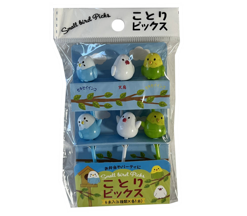 ことり ピックス 6本入 ピック パーティ ランチ 誕生日 弁当 弁当箱 爪楊枝 楊枝 つまようじ 子供 セキセイインコ 男の子 女の子 pic pics 白文鳥 小鳥