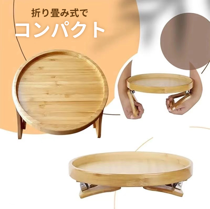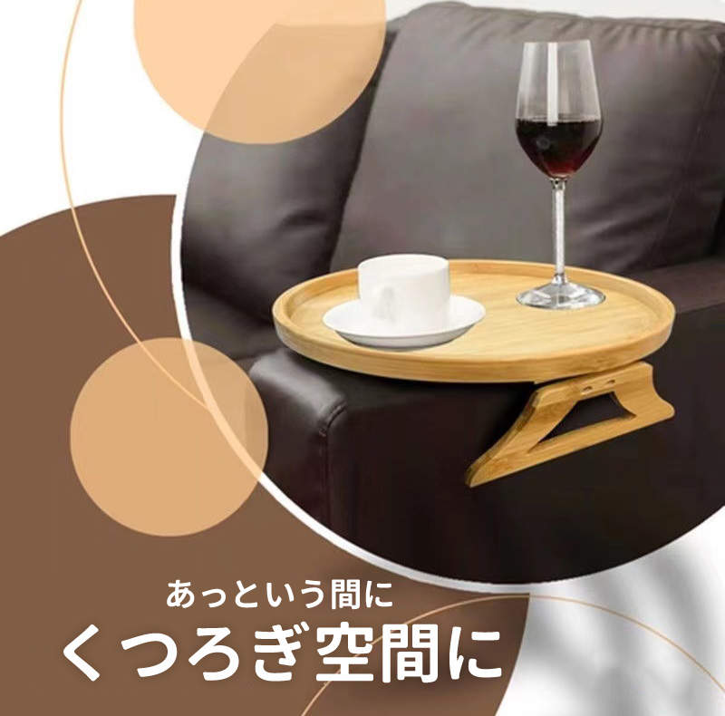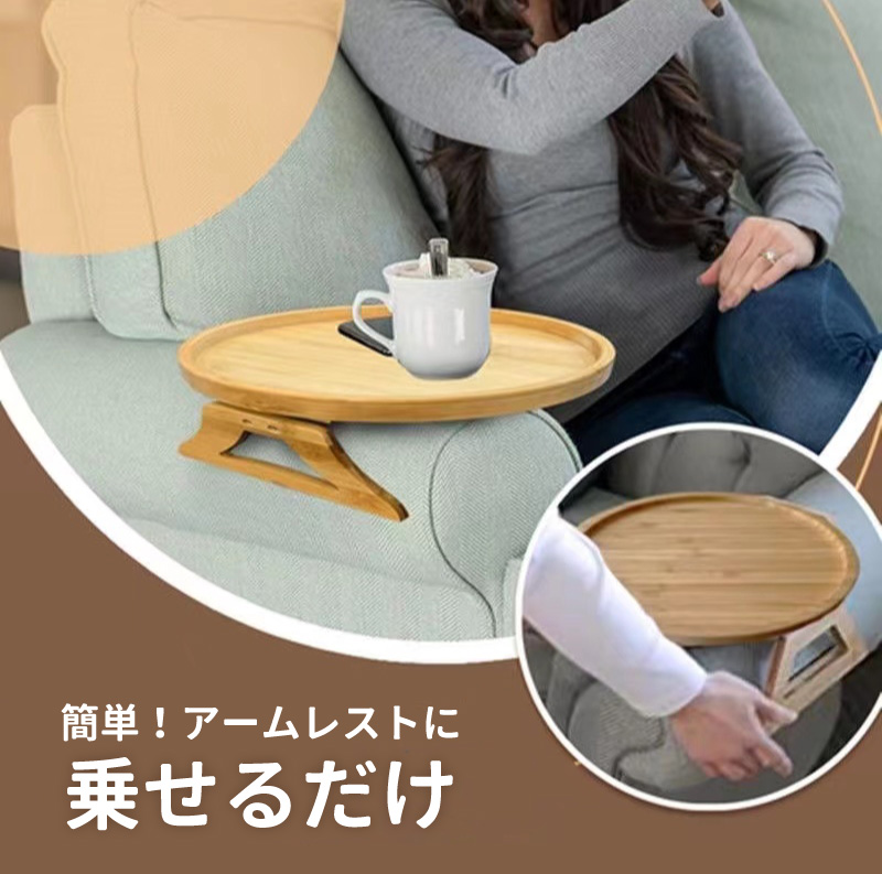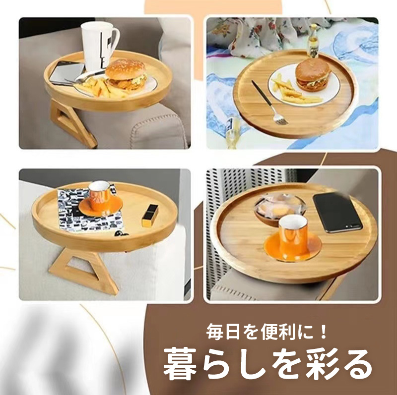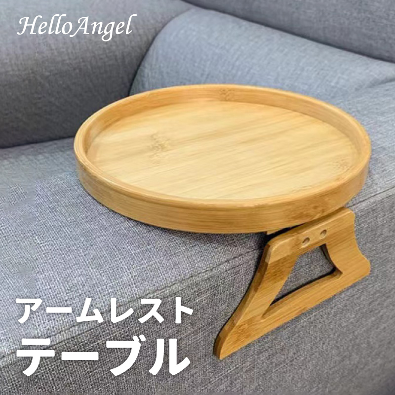アームテーブル ソファ サイドテーブル 円形 ミニテーブル アームレスト クリップ トレー 木目 便利 リビング おしゃれ