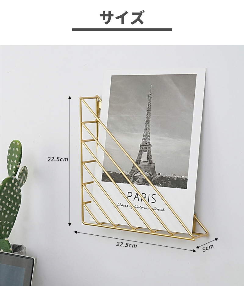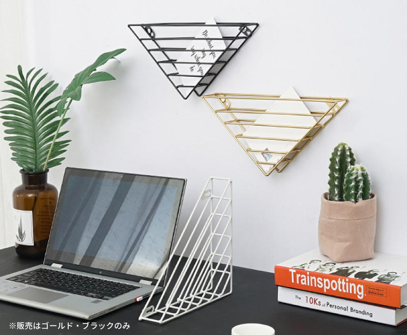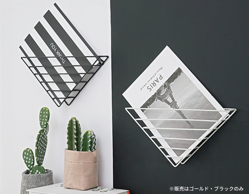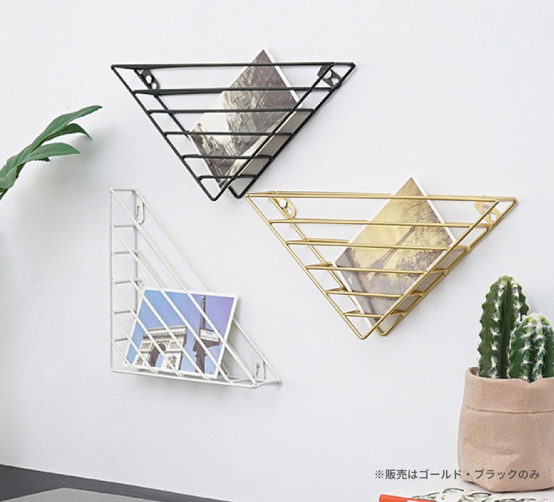 アイアン トライアングル ウォール マガジンラック ゴールド 壁掛け ブラック インテリア 韓国 スリム ウォールシェルフ 本 雑誌 CDラック 見せる 収納 ウォールポケット レターラック 飾り棚 ディスプレイ マガジンスタンド