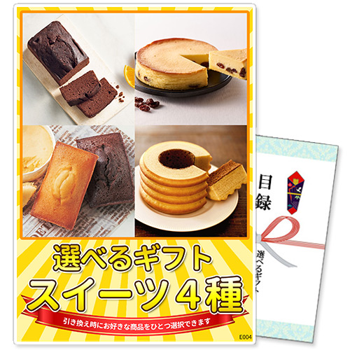 景品 選べるギフト景品 スイーツ4種コース【商品引換券】【A4パネル付】 ゴルフコンペ 協賛品 参加賞 結婚式 新年会