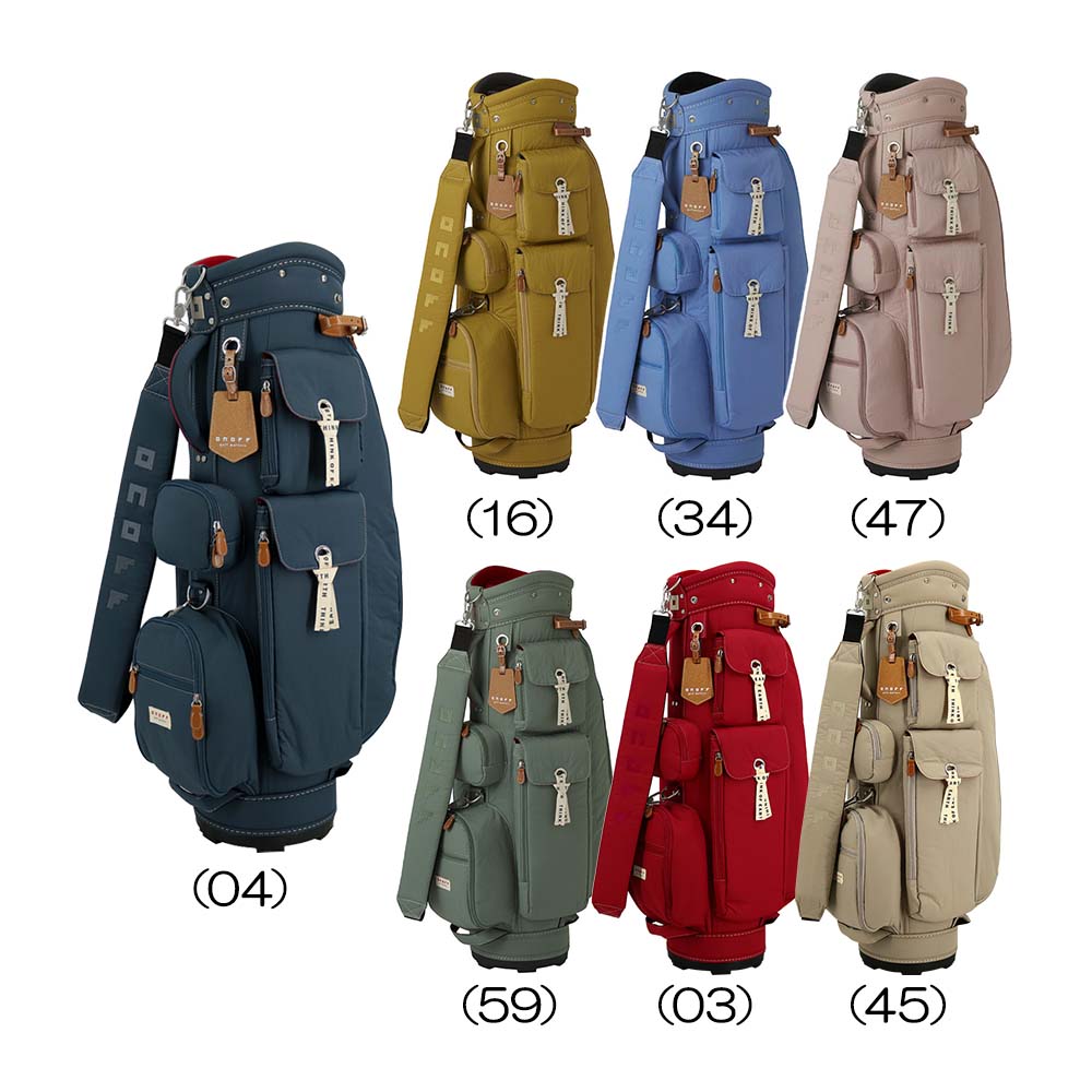 【お買い得品】オノフらしいやわらかな風合いを生かしたキャディバッグ。ロゴリボンがアクセントになっており、トレンドを活かしたアースカラーをテーマに女性らしいデザインに仕上げました。機能面では、ナイロン素材を採用することで、生地強度を強く保ち、また水や汚れに強い撥水加工を施しました。女性でも持ち運びしやすいよう2.5kgと軽さにもこだわったモデルとなっています。●クラブの絡みを抑制するセパレーター内蔵。●貴重品パイルポケット。●デオドラントネーム(消臭・除菌効果)。●ボトムハンドル。●グローブホルダー。●シューズ収納可能背袋。