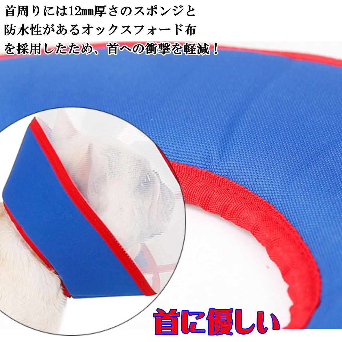 | 特徴 | 「軽量」+「ソフト」+「視界クリア」の安全かつ快適なエリザベスカラーです。 ・ケガや皮膚病にかかった時の傷なめ防止、噛み防止に役立ちます。 ・丈夫で半透明なPP素材を採用し、視野良好。 ・首周りには12mm厚さのスポンジと防水性があるオックスフォード布を採用したため、首への衝撃を軽減! ・そのまま横になって休めます。 ・首回りはマジックテープなので、サイズ調整ができ、ペットの首をやさしく包んで、ペットの動きを守ります。 ・きれいにしやすい素材なので、清潔に使える。 ブルーとピンクのSサイズのみは旧タイプで、その他は新タイプです。 |