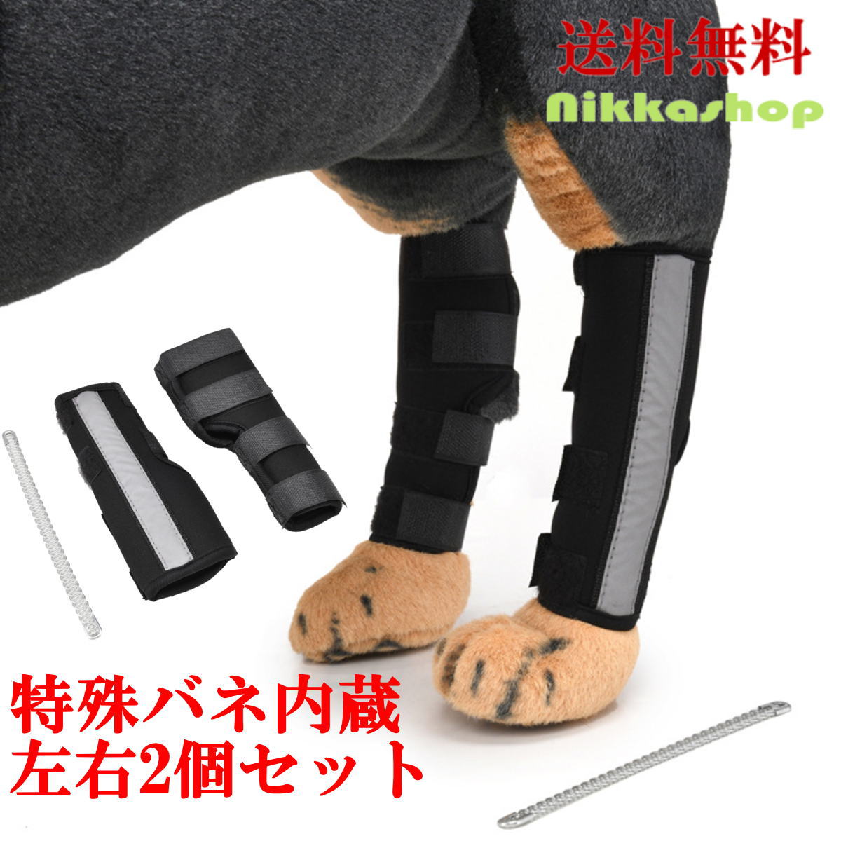 | このサポーターは、特殊バネが内蔵されており、 歩行時の衝撃を吸収し、関節への負担を軽減、 犬の関節のブレを効果的に軽減します。 |