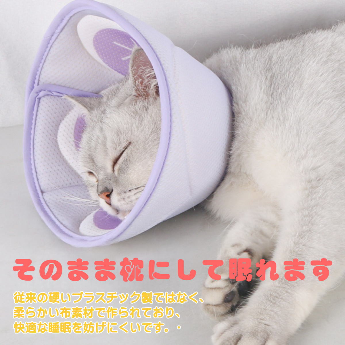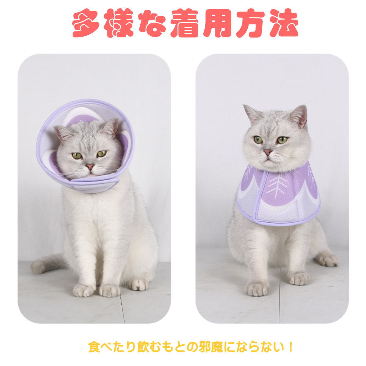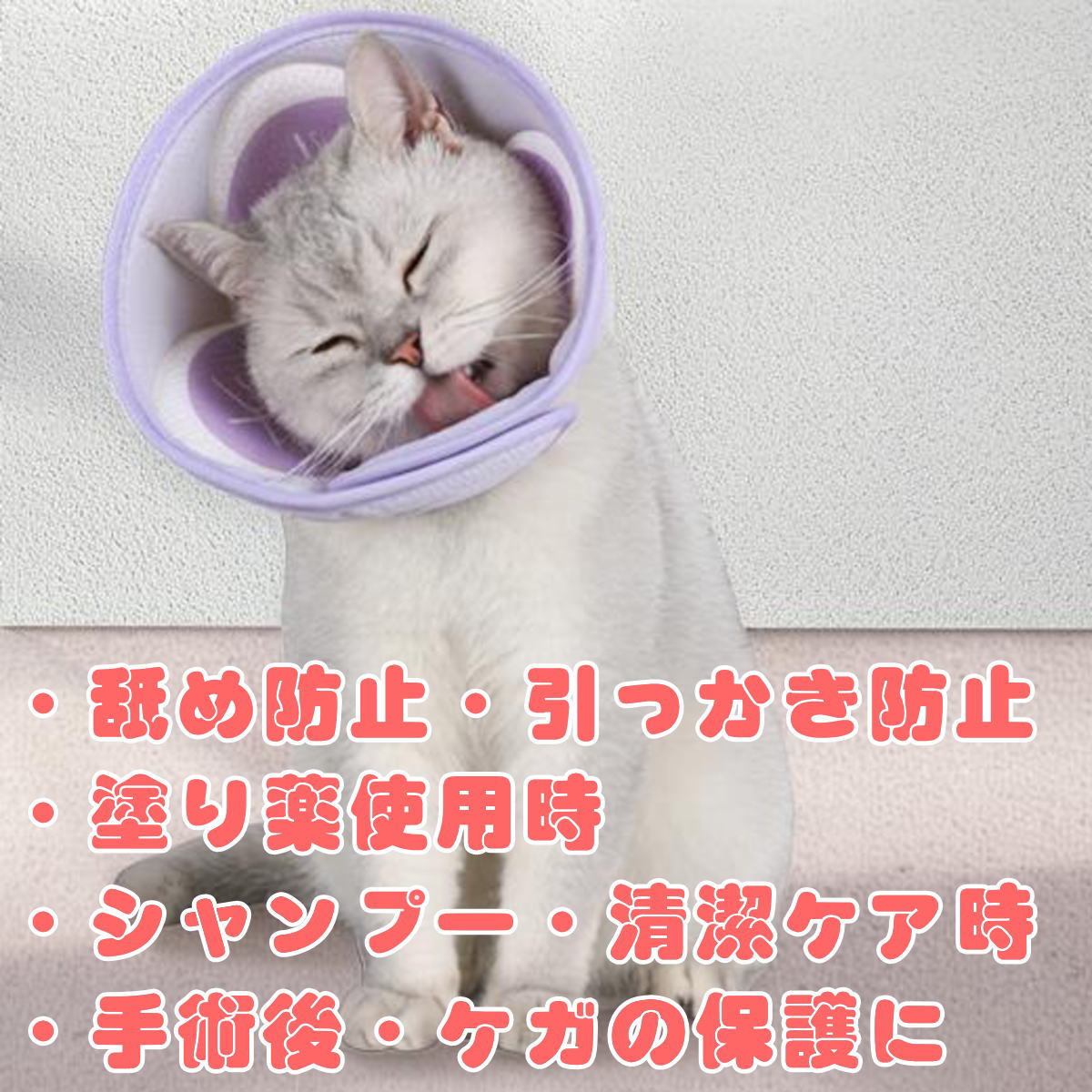 | ・舐め防止・引っかき防止 ・塗り薬・点滴・洗浄ケア時 ・手術後・ケガ・皮膚トラブルの保護 ・シャンプー・清潔ケア |