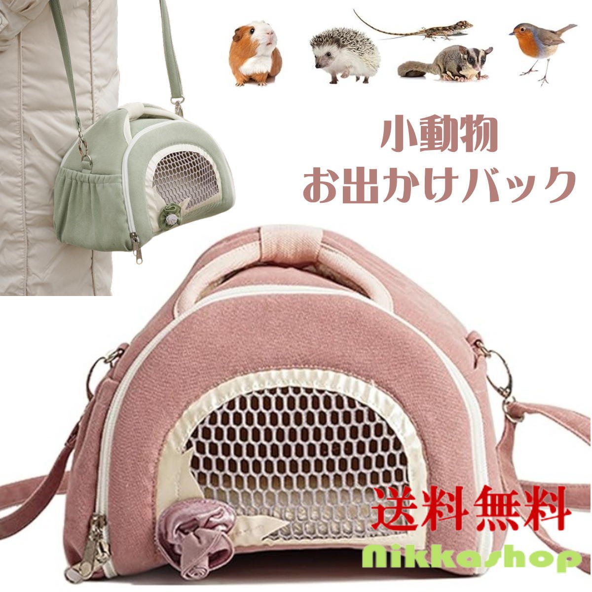 | 特徴 | ウサギやハムスター、リス、モモンガなどの小動物のお出かけに最適なキャリーバッグです。 大きく開けるデザインで、ペットの出し入れが簡単。 メッシュ素材を採用しており、通気性が良く、ペットが快適に過ごせます。 中敷き付きで、ペットの足元も柔らかく保護。 手持ちと肩掛けの2WAY仕様で、持ち運びも便利です。 ポケットも付いており、小物の収納にも困りません。 さらに、丸洗いできるので、いつでも清潔に保てます。 折り畳んで収納できるため、使わない時も場所を取りません。 お散歩やお出かけに、このキャリーバッグでペットとの楽しい時間をお過ごしください。 避難時にも最適!軽くて持ちやすい! 適用対象:うさぎ、チンチラ、モルモット、デグー、ハリネズミ、フェレット、リス、モモンガなど2KG以内の小動物 |