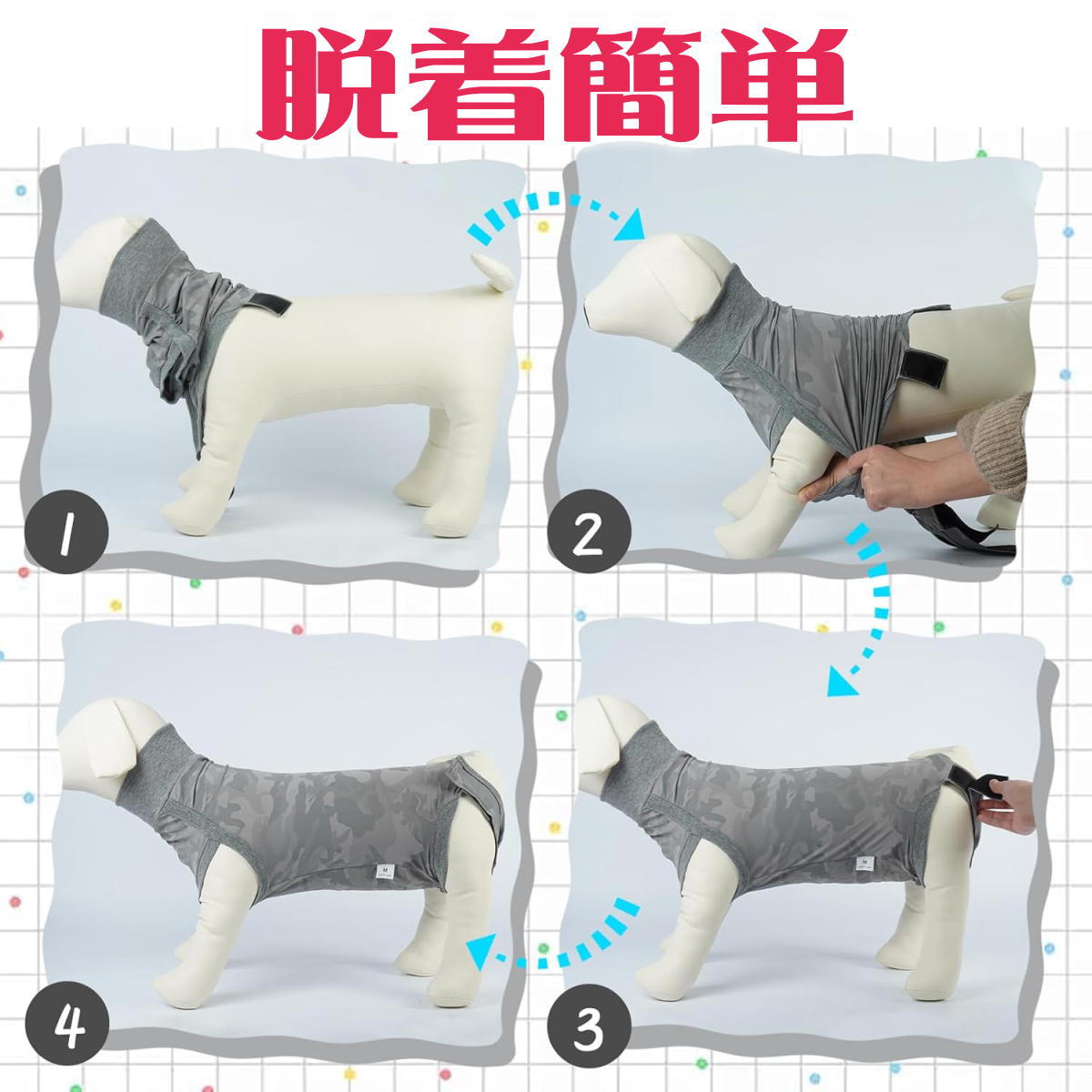 | 特徴 | ・手術後の犬や、発情期、生理期のメス犬に最適で、傷口の舐め防止等のお悩みから肌を守る術後服。 ・エリザベスカラーの代わりに、 手術後の飲食時や睡眠時、排泄時に邪魔にならず、散歩もストレスなく自由に行ける。首に負担がかからず、快適です。 ・吸湿速乾性に優れ、消抗菌効果でオイや菌の発生を抑え、動きやすく、締めつけのない着用感を保つために伸縮性にもこだわった素材を選んでいます。 ・伸縮性ある生地で着せやすい!ワンチャンに最適な程よいフィット感!愛犬の動きも阻害しないため、ストレスを感じることなく、術後の日常を過ごせます。 ・着たままでオシッコ、ウンチできます。男の子にはおむつが必要ですが、もしたちしょん防止機能は不必要なら、内側にカットして、そしておしっこをすることできます。 XXSからXXXLまでのサイズ展開があり、小型犬から大型犬まで幅広い体型に対応しています。 男の子にはマナー用、女の子にはサニタリー用として男女兼用に 鮮やかな色合いが愛犬の可愛らしさを引き立て、日常のお散歩や家でのリラックスタイムにもぴったりです。 愛犬の健康と快適さを考えたマナーウェアで、より充実したペットライフをサポートします。 |