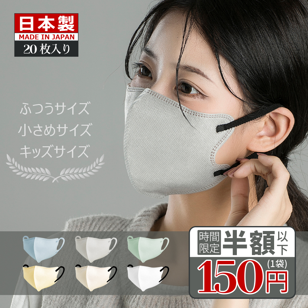 日本製マスク 3Dマスク 不織布 20枚 立体マスク バイカラーマスク 不織布マスク 男女兼用 小顔 子供用マスク 3dますく 立体 使い捨て 息がしやすい 国産
