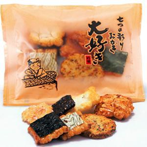おかき好きの定番ともいえる、当店一番人気のお品です。一つの袋で七つの味が楽しめる、にぎやかミックス。毎日のお茶の時間もにぎわいます。