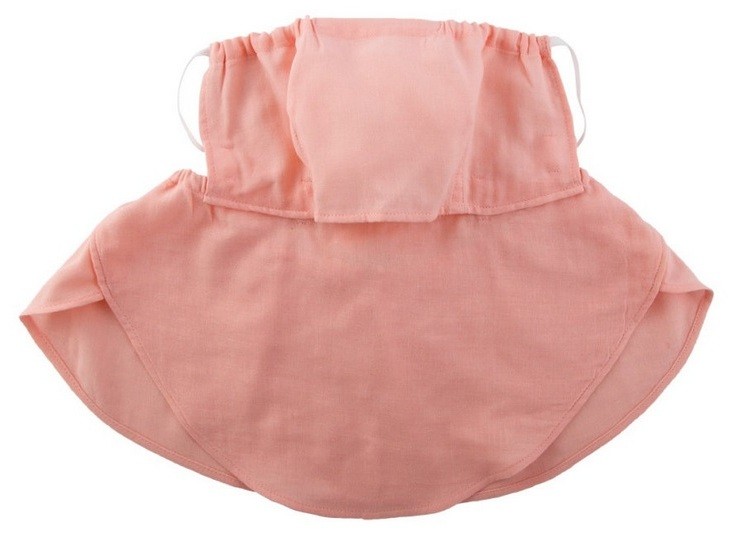 ○ネックカバー付き二重ガーゼ製マスク+UVカット加工で、意外と油断しがちな首の後ろまでばっちりカバー!日焼けから守ります