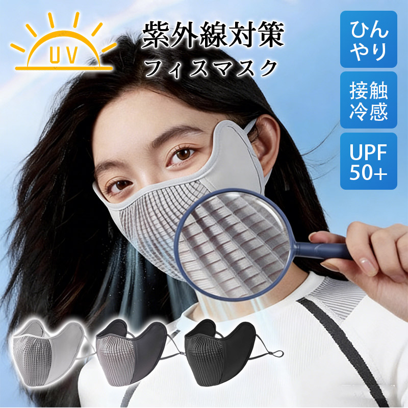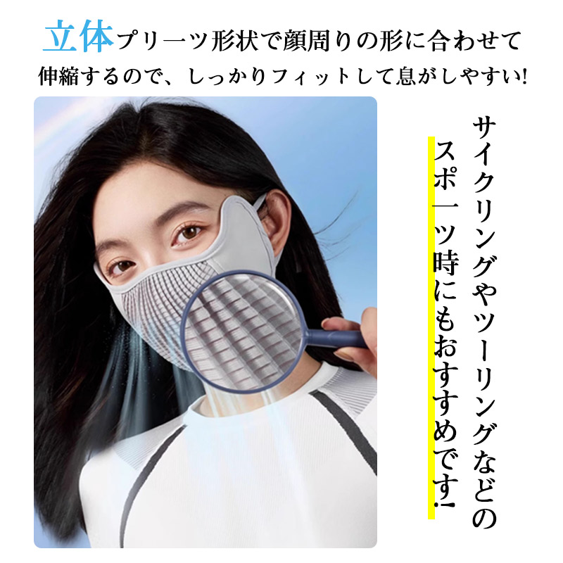 マスク 洗える フィスカバー 涼しい 日焼け止め UVカット 紫外線カット 接触冷感 アウトドア 通気 自電車 快適 ひんやり 男女兼用 立体的