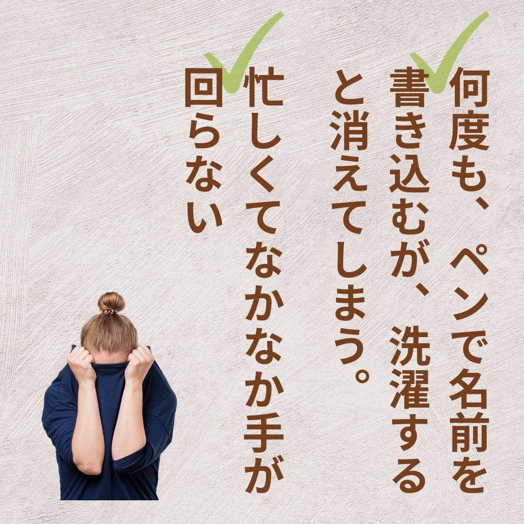| 洗濯機でも乾燥機でも取れないようしっかり縫い付けしています。 備考欄にお名前をお書き下さい。(間違いがないようご注意下さい) |