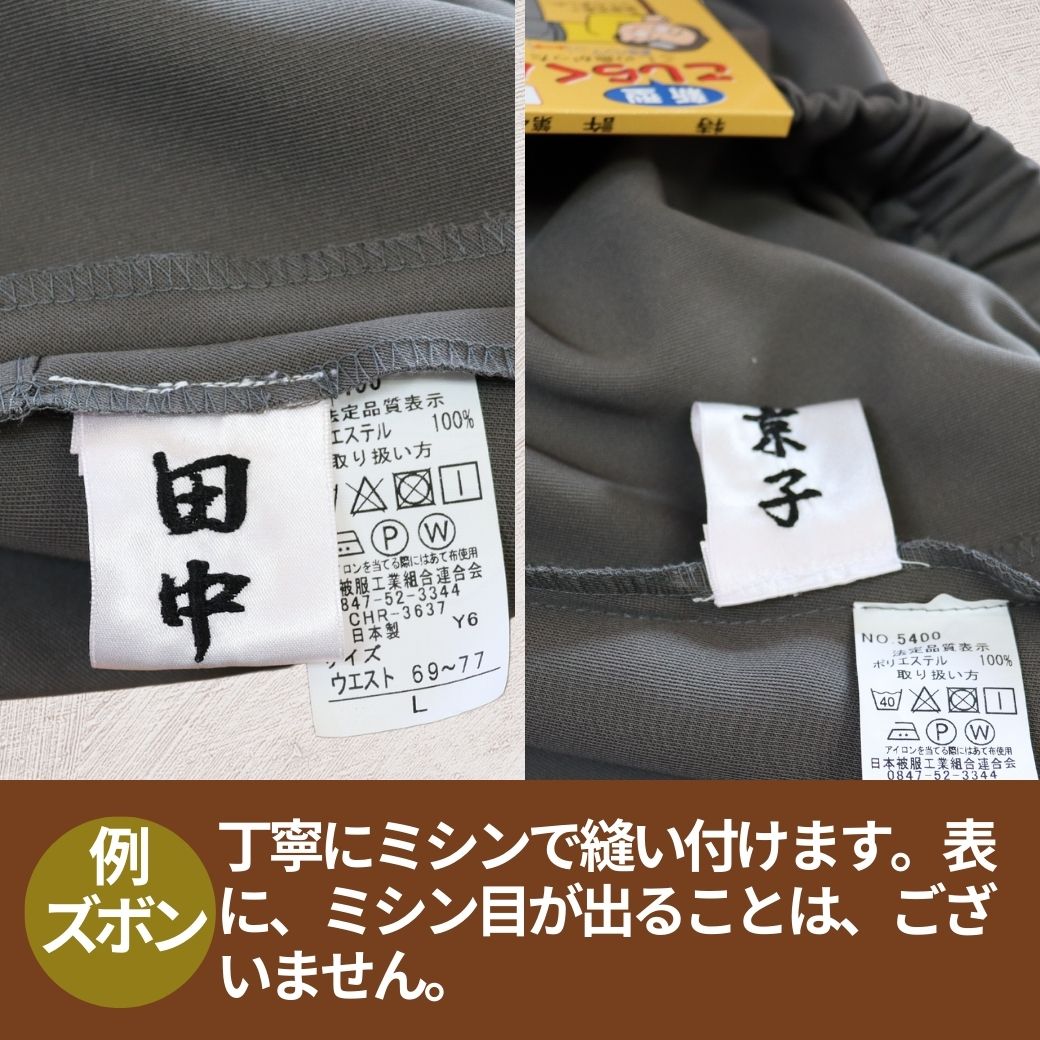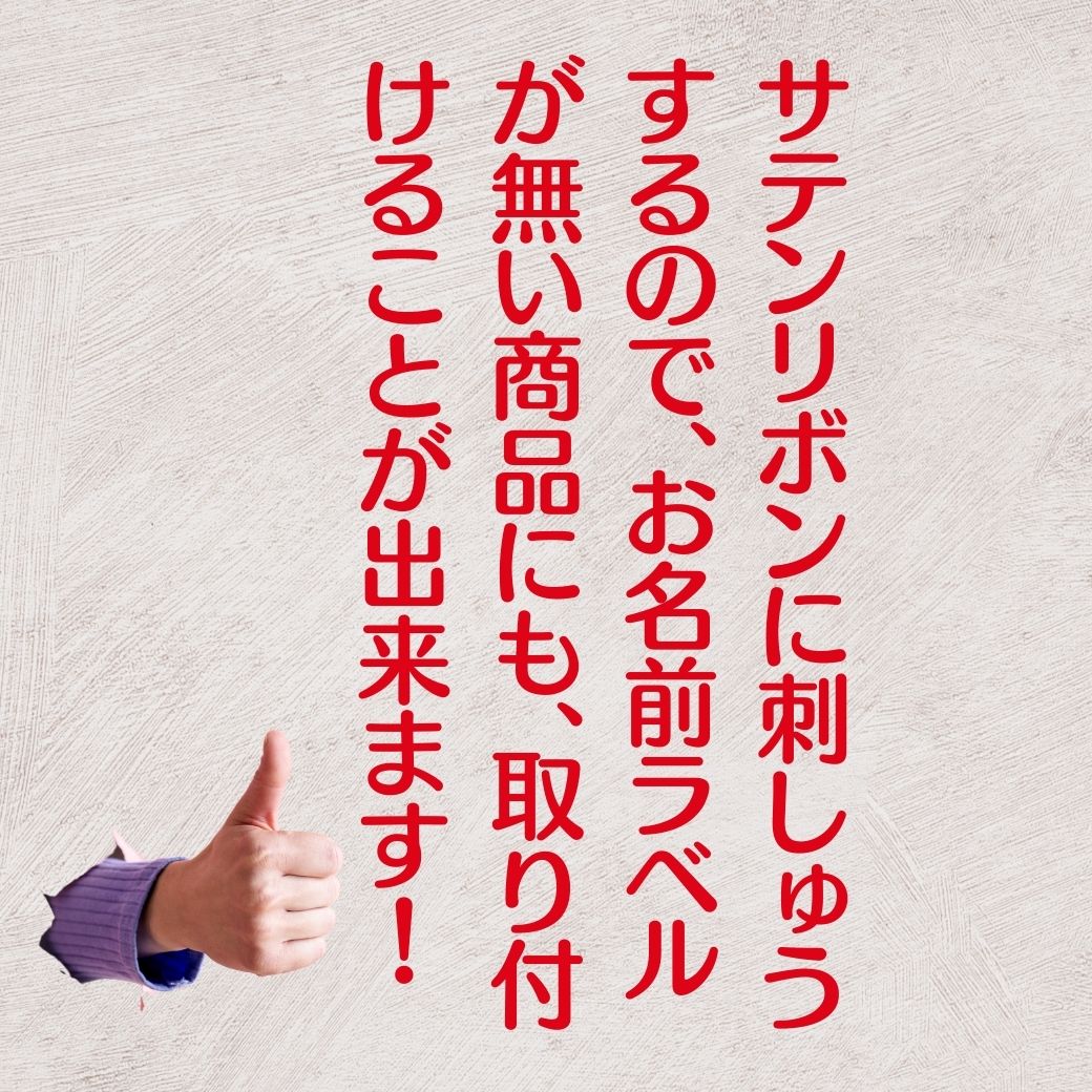 | 当店で御求め頂いた商品に名前を刺しゅうして縫い付け致します。 ※ネームラベルを取り付けた商品の交換、返品はお受け出来ませんのでご了承下さい。 |