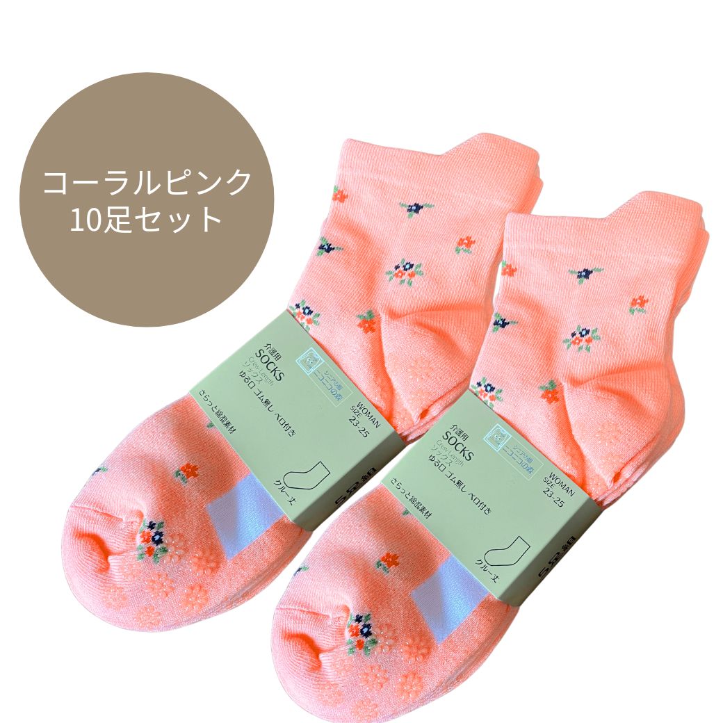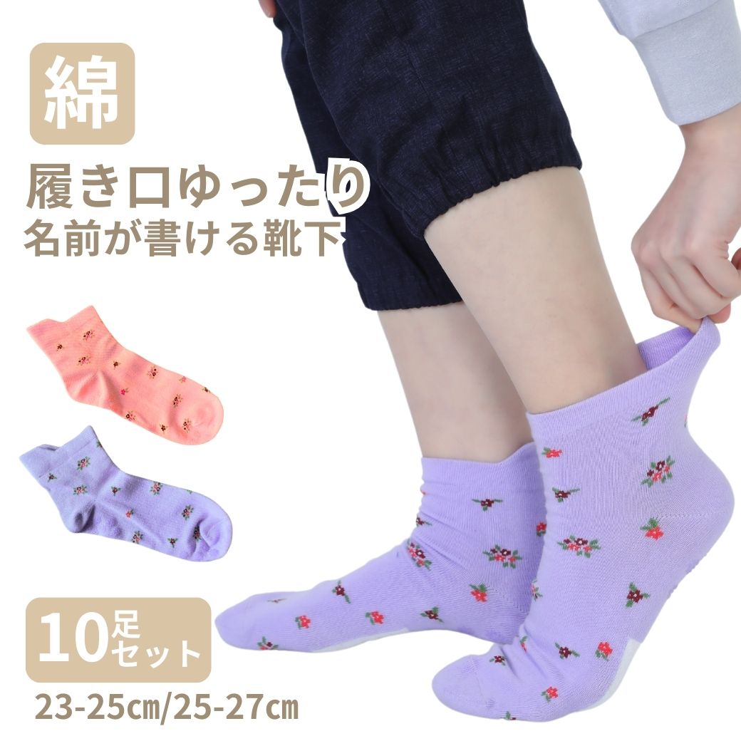 シニアファッション 80代 70代 レディース 靴下 名前が書ける すべり止め付き 締め付けない ベロ付 10足組 しめつけ解消 ゆるく口