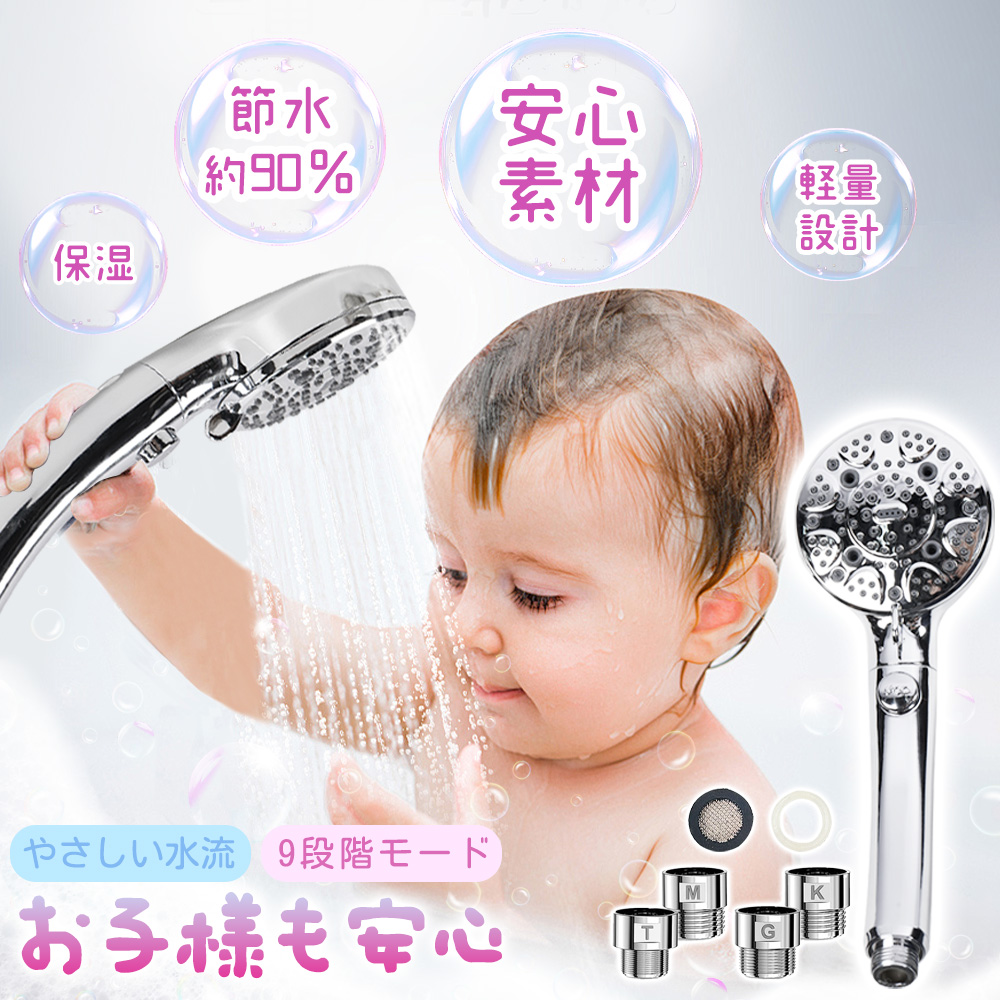 【多段階水流自由切替】シャワーヘッド 高水圧 9段階モード 超微細泡シャワーヘッド 節水 手元止水 極細水流 洗浄力 保温 肌ケア 簡単取り付け 手持ち式シャワー