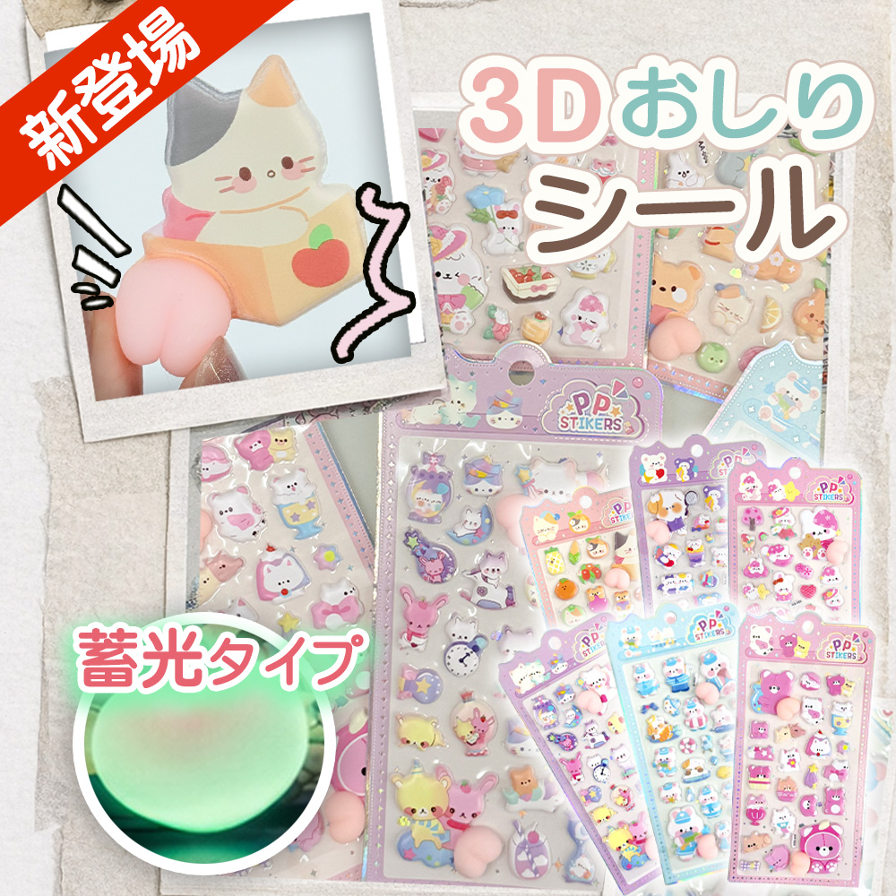 6枚★限定蓄光おしり新登場★ぷにぷにお尻シール 蓄光おしりシール ぷくぷく 3Dシール 立体シール ぷにぷにおしりシール ご褒美 DIY用 手帳 日記帳用 シール交換