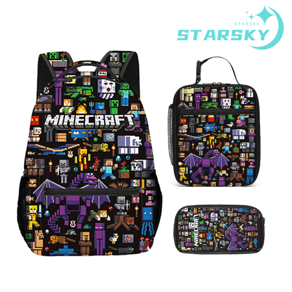 Minecraft マインクラフト 鞄 3点セット ロブロックス リュックサック 弁当箱 筆箱 キッズ 外出 軽量 通学 遠足 耐久性 大容量 プレゼント ギフト