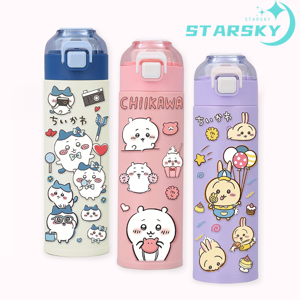 ちいかわ ハチワレ ウサギ 魔法瓶 水筒 500ml 直飲み 水筒カバー付き 水筒ブラシあり 子供用 大人用 保温保冷 おしゃれ かわいい プレゼント