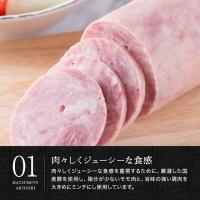 原材料:豚モモ肉(国産)、豚うで肉(国産)、植物たん白、食塩、糖類(砂糖・水あめ・ぶどう糖)、香辛料、食用油脂/カゼインNa(牛乳由来)、リン酸塩(Na)、調味料(アミノ酸等)、発色剤(硝酸K・亜硝酸Na)、酸化防止剤(ビタミンC)、香辛料抽出物、くん液、、メタリン酸Na、着色料(コチニール・ラック)、(一部に乳・小麦・豚肉・大豆を含む)