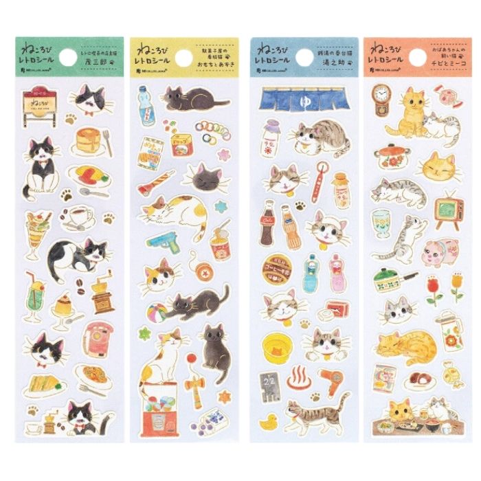 昔懐かしい場所で愛される猫たちをテーマにしたレトロなシール