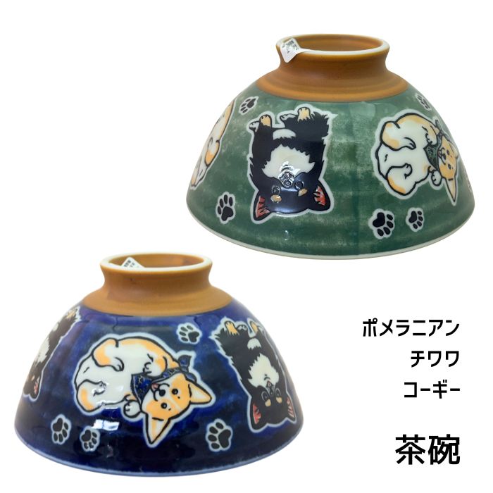 美濃焼 わんず集合 茶碗 お茶碗 飯碗 ポメラニアン チワワ コーギー グリーン ブルー 日本製 犬柄 大きめ
