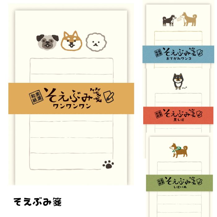 柴犬 そえぶみ箋 美濃和紙しばいぬ ワンワンワン 一筆箋 ミニレターセット 便箋 封筒 古川紙工